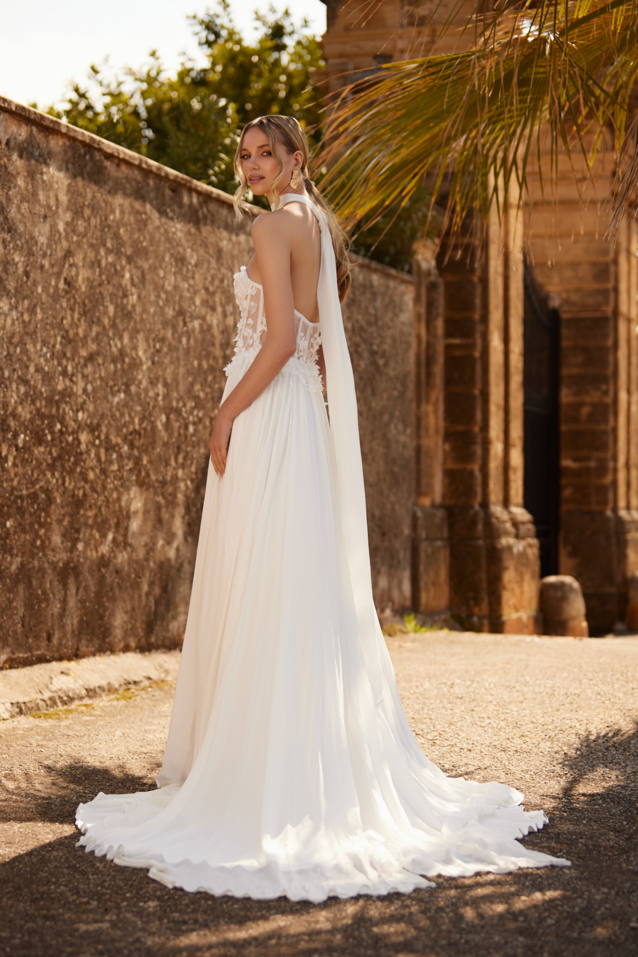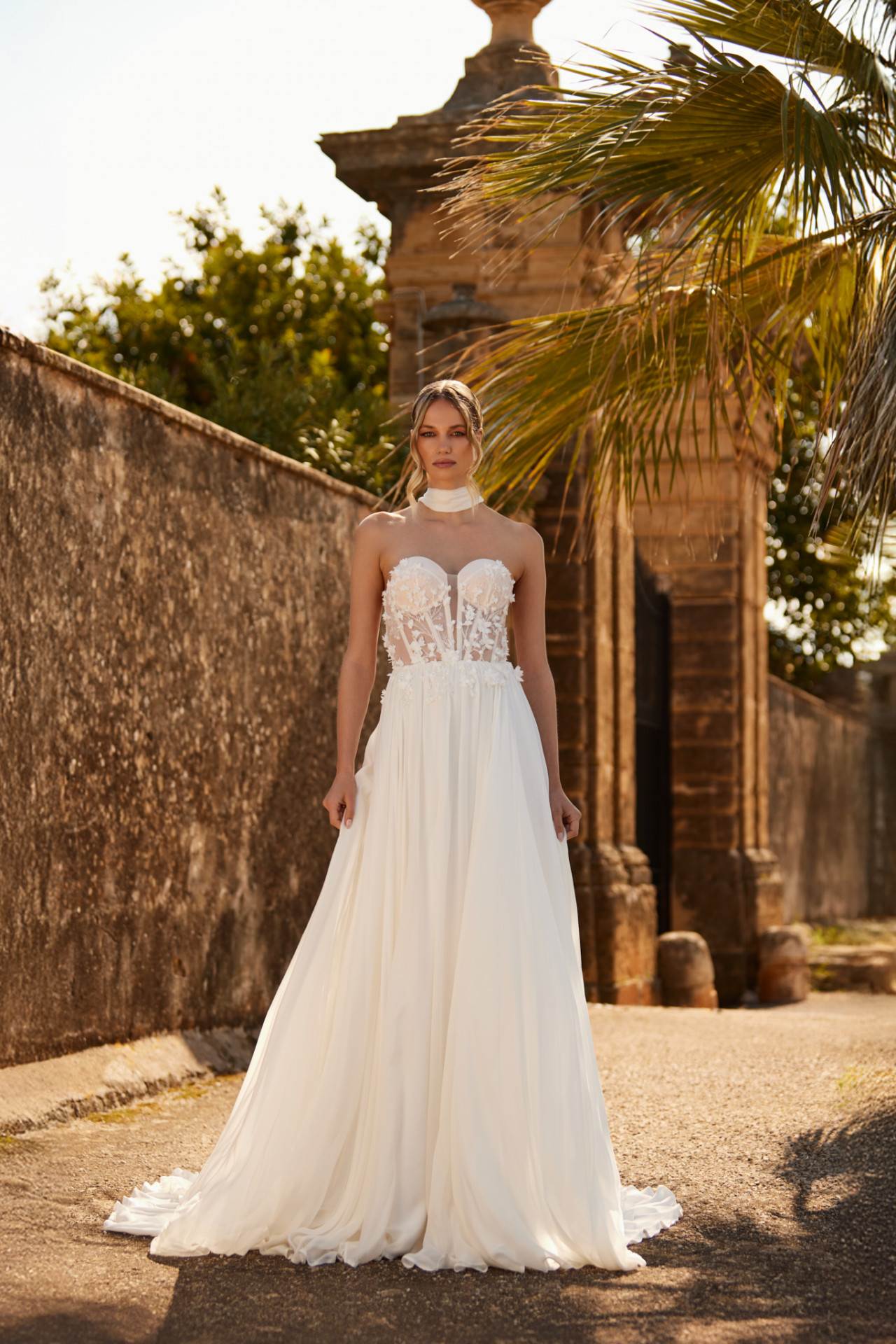 Unsere leicht fließenden A-Linien Brautkleider kombinieren zeitlose Eleganz mit einer schmeichelhaften Silhouette, die jeder Braut einen atemberaubenden Auftritt garantiert. Der A-Linien Schnitt, der sich sanft von der Taille nach unten öffnet, zaubert eine zarte und feminine Linie, die besonders durch ihre fließenden Stoffe besticht.