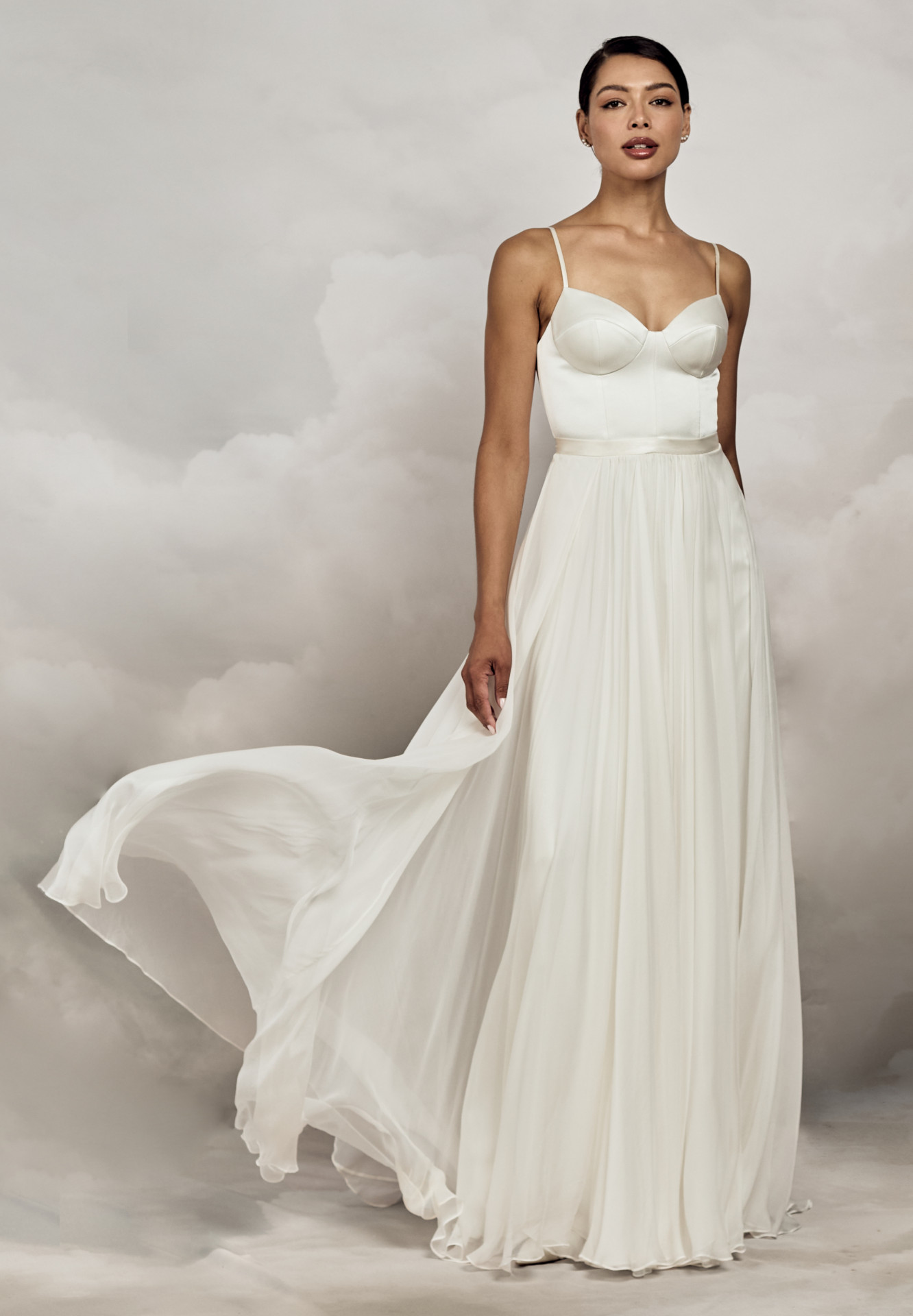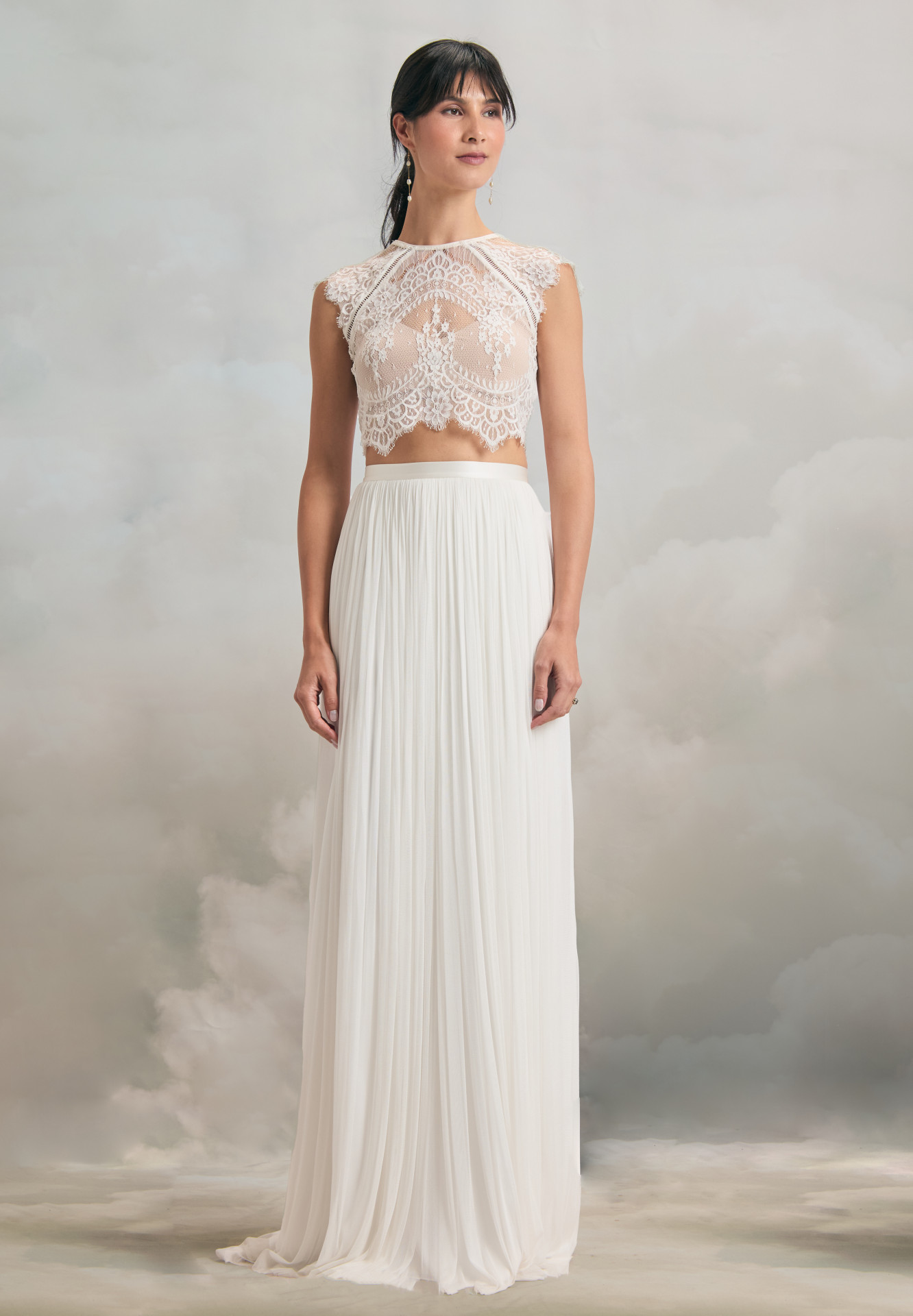 Unsere zweiteiligen Brautkleider für das Standesamt vereinen zeitlose Eleganz mit einem modernen Twist. Dieser Stil bietet dir die Freiheit, Oberteil und Rock individuell zu kombinieren, um deinen persönlichen Braut-Look zu kreieren. Mit einem Standesamt-Zweiteiler kannst du eine schlichte, elegante Silhouette zaubern oder mit modischen Details Akzente setzen.